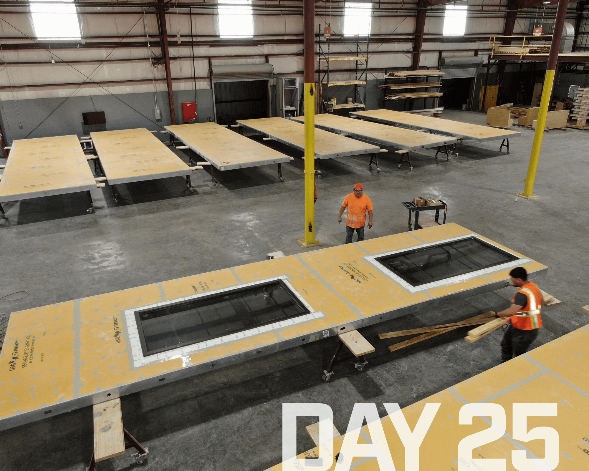 To bring manufacturing discipline to the process, each panel was assigned a QR code tied to inspections, production tracking, and quality control data. As panels moved through framing, waterproofing, and final inspection, foremen and superintendents logged progress in real time. This visibility allowed the team to identify bottlenecks, address deficiencies early, and continuously improve production while fabrication was still underway.